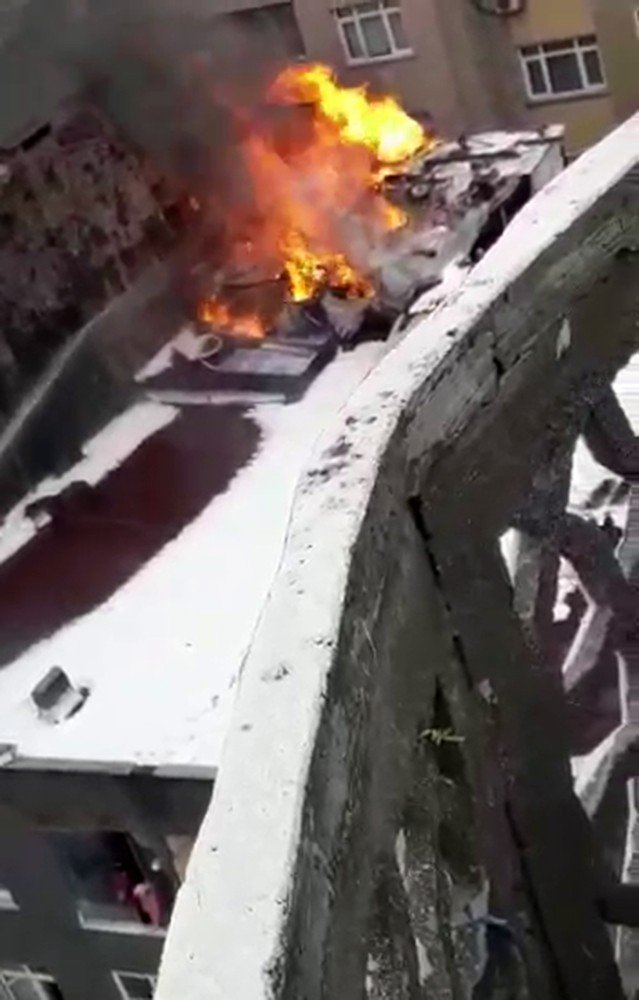 Herhangi bir can kaybı ve yaralanmanın yaşanmadığı yangın, bir vatandaşın cep telefonu kamerasıyla kaydedildi. Görüntülerde çatıdaki eşyaların alev alev yandığı ve yanan eşyaların içinde motosikletin bile olduğu görülüyor.