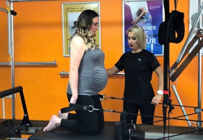 Hamileleri normal doğuma hazırlamak, onların sürecini daha kolaylaştırmak ve doğru nefes alarak ıkınma tekniklerini öğretmeyi amaçladıklarını aktaran Özel Ümit Tıp Merkezi Pilates Eğitmeni Gülçin Kaya Uğur, yedi yıldır gebe pilatesi dersleri verdiklerini dile getirdi. 12'nci hafta itibariyle herhangi bir düşük problemi yoksa anne adaylarını bireysel bir şekilde hamile pilates derslerine başlattıklarını kaydeden Uğur, "Bu derslerimizin içerisinde hem mat üzerinde hem de reformer aletlerimiz üzerinde çalıştırıyoruz. Derslerimiz ortalama 1 saat ile 45 dakika arasında sürüyor. Ders içeriğinde nefes eğitimleri, bebek ilkyardımı, bebek yıkama, bebek masajları gibi teknikleri hem teorik hem de pratik şekilde anne adaylarımıza destek vererek öğretiyoruz" dedi.