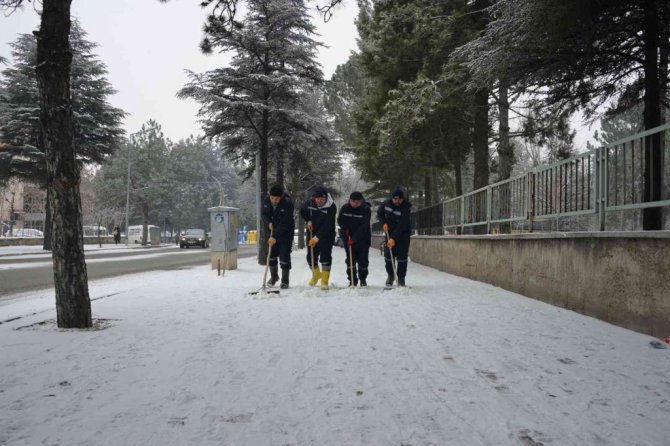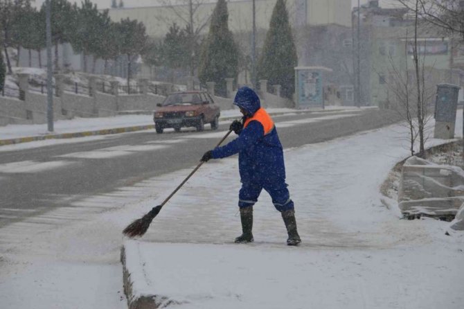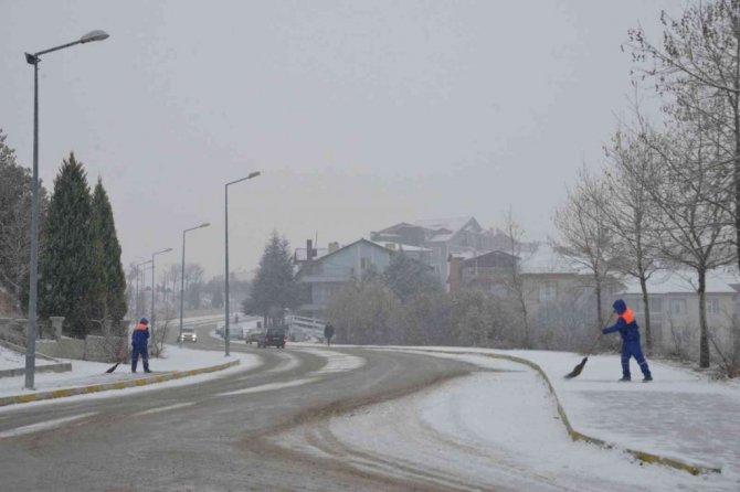 Kütahya'nın Gediz ilçesinde, etkili olan kar yağışıyla birlikte Gediz Belediyesi ekipleri, çalışmalarını yoğunlaştırdı.