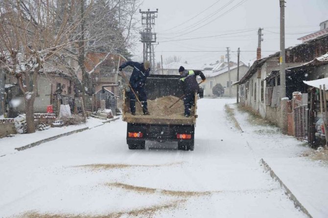 Gediz Belediyesi ekipleri karla mücadele için sahada