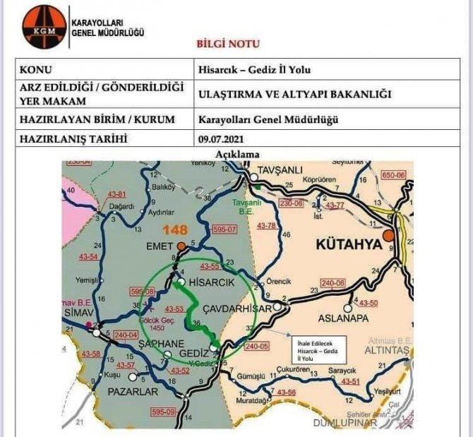 Başkan Sebahattin Ceyhun, konuyla ilgili yaptığı açıklamada, "Emet, Hisarcık ve Gediz ilçelerimizi birbirine bağlayacak olan 35,9 kilometrelik karayolunun ihalesi, 58 firmanın katılımıyla Ulaştırma ve Altyapı Bakanlığımızca gerçekleşmiştir. Şehrimize ilçelerimize hemşerilerimize hayırlı olsun" dedi.