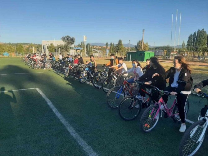 Kütahya'nın Gediz ilçesinde Amatör Spor Haftası etkinlikleri kapsamında, öğrenciler ilçe içinde bisiklet turu yaptı.