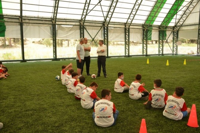 Gediz Belediye Başkanı Muharrem Akçadurak 208 öğrencinin başvurduğu 2010-2014 doğumlu gençlerin bulunduğu futbol yaz okulunu ziyaret ederek öğrencilerle sohbet etti.