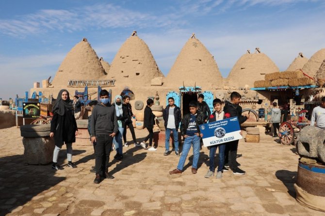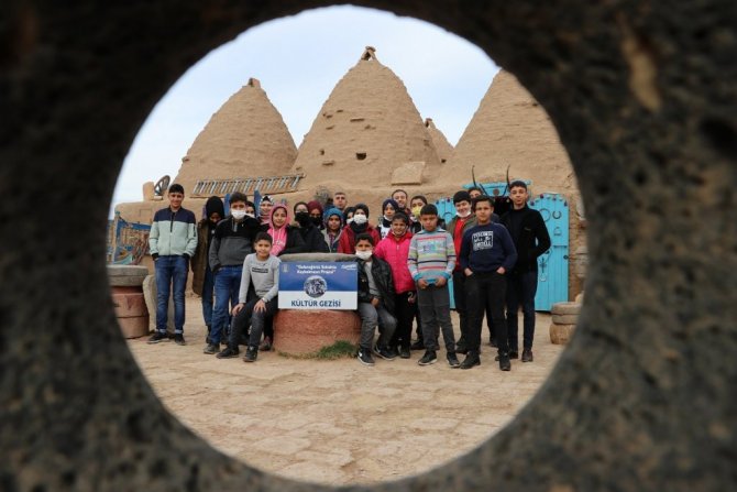 Harran İlçesinde bulunan tarihi ören yerleri, gastronomi merkezi ve kümbet evleri gezen çocukların yeni yerler görmekten çok mutlu oldukları ve keyif aldıkları görüldü.