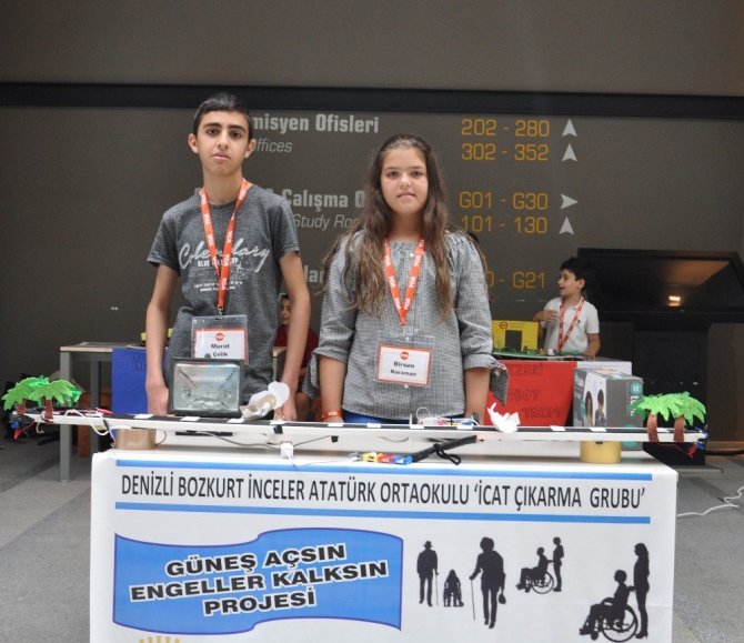 Denizli Bozkurt İnceler Atatürk Ortaokulu öğrencileri Birsen Karaman ve Murat Çelik engelliler ve yaşlılar için güneş enerjisi ile çalışan yaya geçidi tasarladılar. Yaşlıların ve engellilerin trafikte karşıdan karşıya geçerken bazı sıkıntılar yaşayabildiklerini söyleyen Birsen Karaman, "Bizde bunu düşünerek güneş enerjisiyle çalışan projeyi yaptık. Yaya geçitlerine güneş enerjisi ile çalışan sandalyeler yerleştirdik. Enerjiyle birlikte yaşlı ve engelli yayalar güvenilir bir şekilde karşıya geçebilecekler" ifadelerini kullandı.