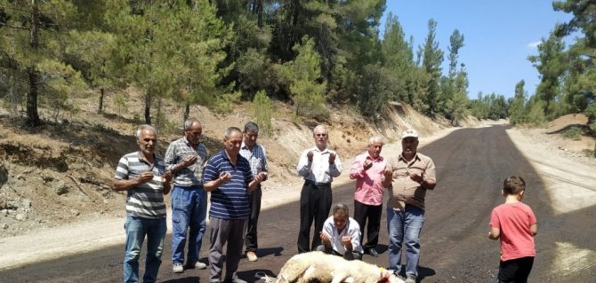 Denizli'nin Çameli ilçesine bağlı bir mahallede başlayan asfalt serimi için mahalle sakinleri kurban kesti.
