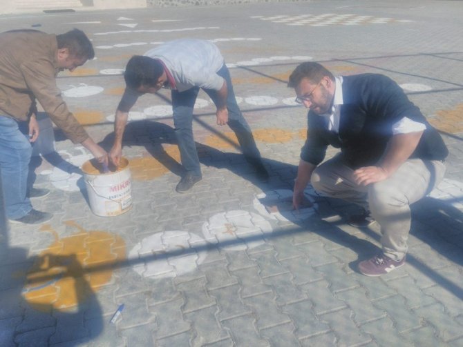 Okul bahçelerinin kilitli parke taş zeminlerine yapılan ’Geleneksel Oyun Çizgileri’ sayesinde açık havada birlikte oyun oynayan çocuklar, anne ve babalarının oyun dünyasını da tanıma fırsatı buluyorlar.