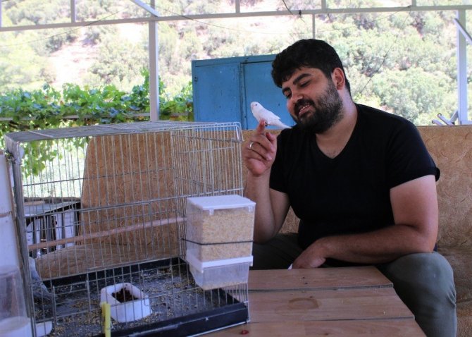 Mücahit Çetin, 2 yıl önce baktığı kuştan sonra sayıyı artırdığını ve yetiştiricilik yapmaya başladığını belirterek, “Bundan yaklaşık 2 yıl önce bir tane kuş bakmakla başladım. Sonra elimi alıştırdım, konuşmaya çalıştırdım. Baktım ki ben onları gerçekten çok sevdim. Birkaç tane daha alıp bunun üretimini yapmaya karar verdim. Şu an yaklaşık 25 çiftim var, hobi olarak yetiştiriciliğini yapıyorum. İnsanlar da güzel tepkiler veriyorlar. Kur’an-ı Kerim okumaya başlayan veya derslerinde başarılı olan öğrencilerime kuşlarımdan hediye ediyorum, mutlu oluyorlar” diye konuştu.