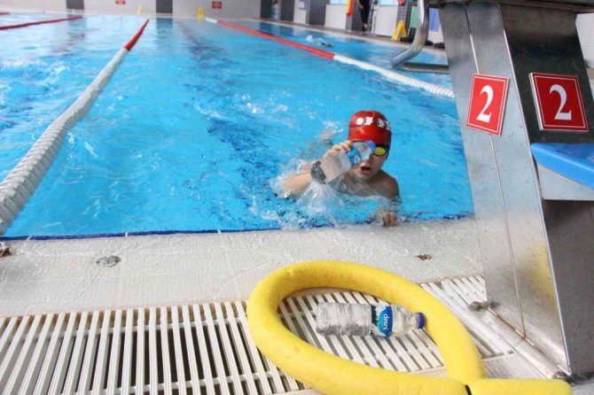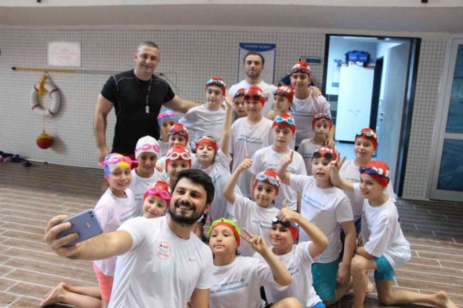 Çevre kirliliğine dikkat çektiklerini belirten 4 sınıf öğrencisi Burçak Öztürk, "Burada havuzun dibindeki pet şişeleri çıkarmak için yarışıyoruz. Çevre kirliliğine dikkat çekme amaçlı. Denizleri kirletmememiz gerekiyor. Eninde sonunda bir gün tekrar o çöpler bizim başımıza yağacak" diye konuştu.