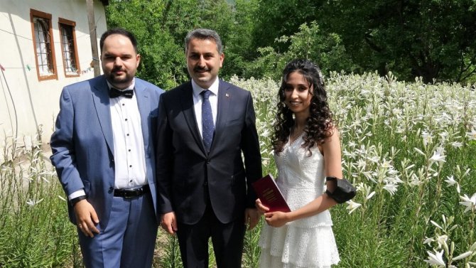 Genç çift ise zambak bahçesinde nikahlarının kıyılmasından duydukları memnuniyeti dile getirdi.
