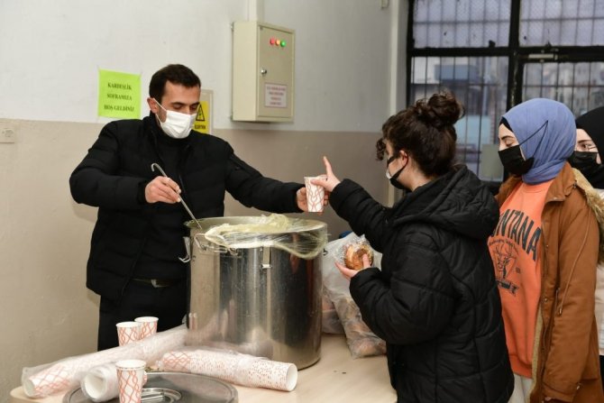 Genç dostu Mamak Belediyesi, öğrencilerin güne sıcacık bir başlangıç yapması için çorba dağıttı.
