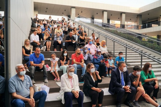 Konuşmaların ardından Şahinbey Kaymakamı Tahir Şahin, genç piyanistlere çeşitli hediyeler takdim etti.