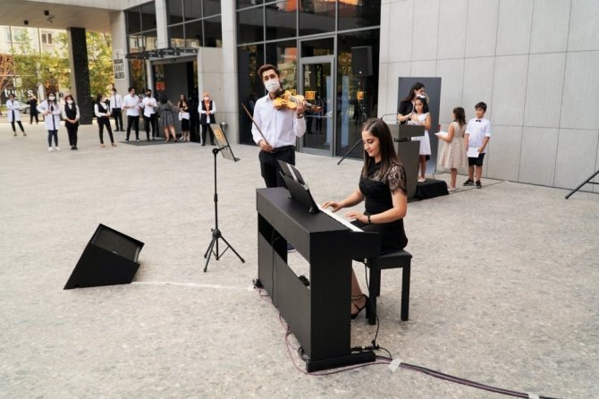 Şehitkamil Sanat Merkezi'nde piyano eğitim gören genç piyanistler, açık havada piyano dinletisi sundu. İlk olarak piyano başına geçen Bassım Albouchi "Hayat Bayram Olsa" adlı eseri çaldı. Daha sonra sırasıyla piyano başına geçen Yaren Şahin, Reyyan Kılınç, İrem Bozkaya, Seren Aygün, Mehmet Yüksek, Hüseyin Katırcıoğlugil ve Beyhan Erimiş birbirinden farklı eserleri çalarak, yeteneklerini sergiledi. Piyano dinletisine katılan Şahinbey Kaymakamı Tahir Şahin ve katılımcılar, genç piyanistleri dikkatle dinlediler. Piyano dinletisi sonunda Kaymakam Tahir Şahin ve katılımcılar, genç piyanistleri ayakta alkışladılar.