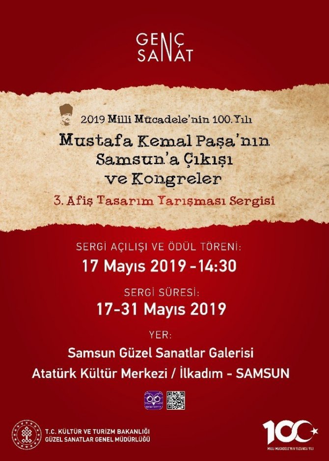 Kültür ve Turizm Bakanlığınca Milli Mücadelenin 100’üncü yılı vesilesiyle düzenlenen ’Genç Sanat: 3. Afiş Tasarım Yarışması Sergisi’ Samsun Güzel Sanatlar Galerisi’nde düzenlenecek törenle başlıyor.