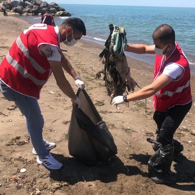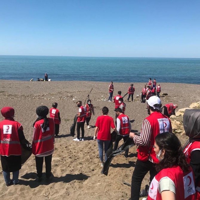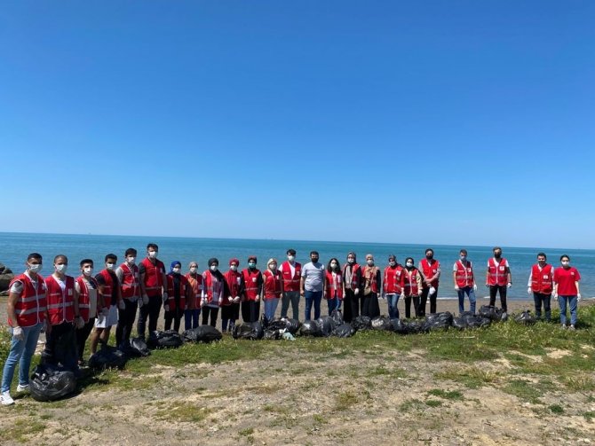 DÜZCE(İHA) – Kızılay Genç Gönüllüleri Karadeniz sahilinde çöp topladılar.