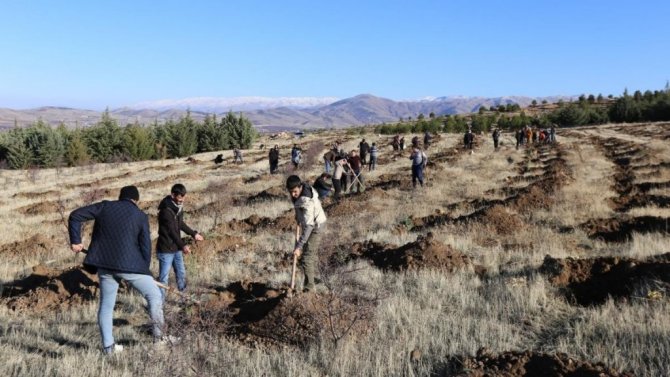 Malatya İnönü Üniversitesi merkez kampüsüne genç öğrenciler tarafından yaklaşık 300 fidan dikildi.