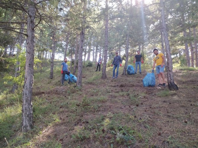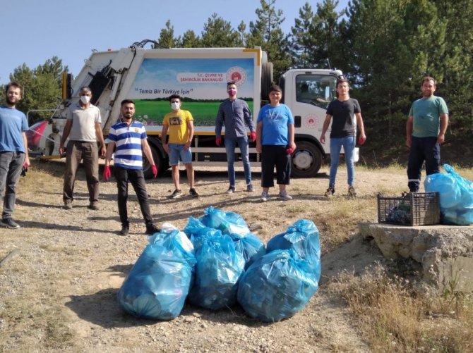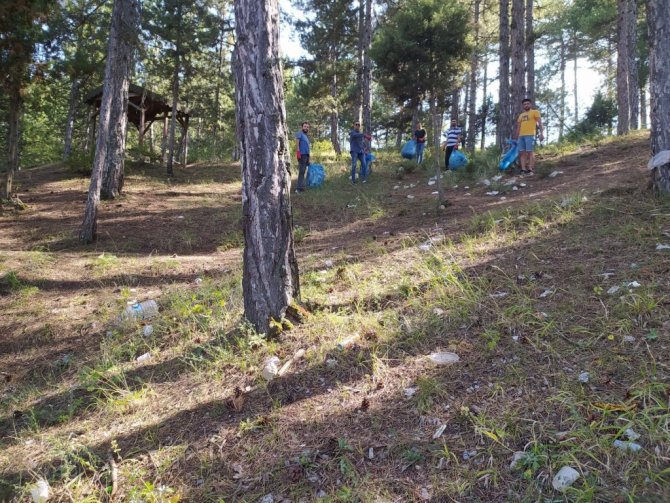 Kütahya'nın Pazarlar İlçesinde Sosyal Sorumluluk projesi çerçevesinde gönüllü gençler, mesire alanlarında temizlik çalışması yaptı.