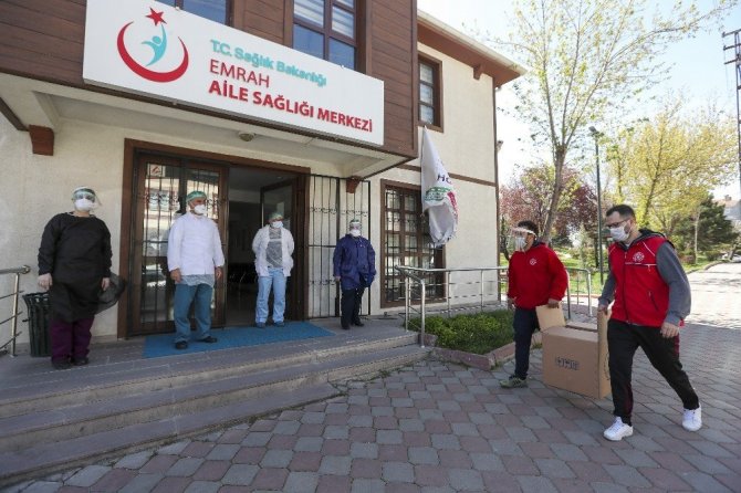 Ankara’daki Gençlik Merkezlerinde üretilen koruyucu maskeler Keçiören’de bulunan Emrah Aile Sağlığı Merkezi’ndeki sağlık personeline ulaştırıldı.