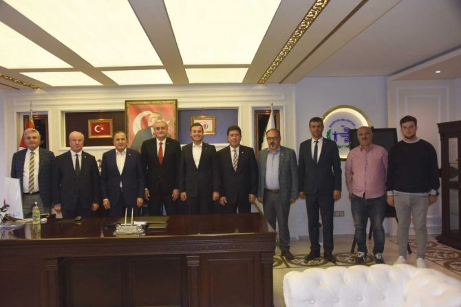 Başkan Bakkalcıoğlu'nu makamında ziyaret eden Genel Başkan yardımcıları Torun ve Akın ile Milletvekili Tüzün, Başkan Bakkalcıoğlu ile bir süre sohbet etti. Samimi bir ortamda gerçekleşen ziyarette Başkan Bakkalcıoğlu misafirlerine yapım çalışmaları devam etmekte olan projeler ile belediyenin çalışmaları hakkında bilgi verdi.