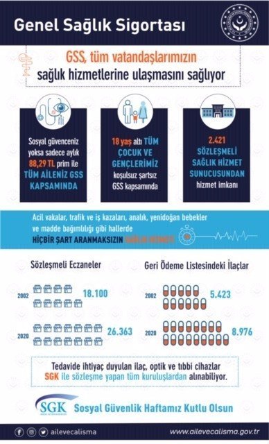 Göktaş açıklamasında, sistemin salgın döneminde başarılı bir sınav verdiğini vurgulayarak, “Genel Sağlık Sigortası ( GSS) kapsamında geliri olmayan vatandaşlarımızın bedava, Asgari Ücretin üçte birinden fazla geliri olan vatandaşlarımızın ise sadece 88.29 .-TL ile sağlık yardımı almaktalar. Dünyada eşi benzeri olmayan GSS uygulamamıza, bütün dünya ülkeleri övgü ile bakıyor. Genel Sağlık sigortası kapsamının geniş olması ve sağlık sektöründe ortaya çıkan tüm değişimlere hızla ayak uydurma kabiliyetine sahip olması nedeniyle, tüm dünyayı etkisi altına alan COVİD-19 salgını surecisince vatandaşlarımızın sağlık hizmet sunucularına erişimi ve yapılacak tedavileri, kullanılacak ilaç ve tıbbi malzemelerin temini ve finansmanında getirilen yenilikler ile sağlığa erişiminin oldukça kolay ve sorunsuz gerçekleşmesi GSS sistemimizin sağlam bir alt yapısı olduğunu en önemli göstergesi olmuştur” dedi.