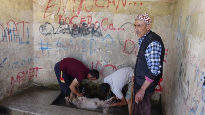 Mehmet Can Soyvural isimli vatandaş ise 2 haftada bir bunu yaptıklarını söyledi. Soyvural, "Hayvanları yıkadığımızda daha temiz ve daha fazla gelişiyorlar. Hayvanlar yıkanınca rahatlıyor ve daha fazla yiyerek kilo alabiliyor. Bu yüzden 2 haftada bir buraya getirip yıkıyoruz" diye konuştu.