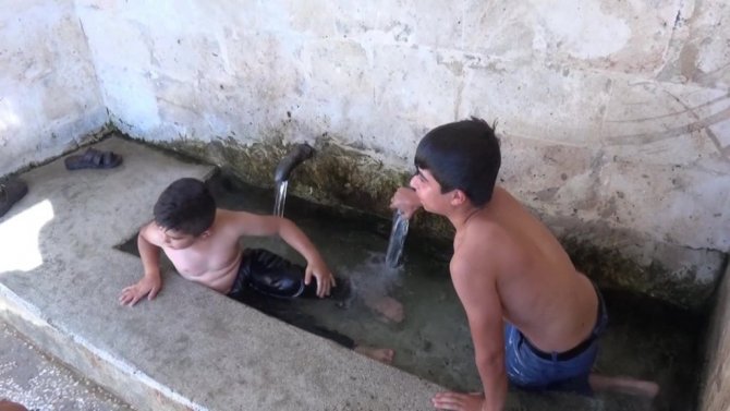 Batman'ın Gercüş ilçesinde hava sıcaklıkların yükselmesiyle hem çocuklar hem de hayvan sahipleri hayvanlarıyla birlikte çeşmelere akın edip serinliyor.