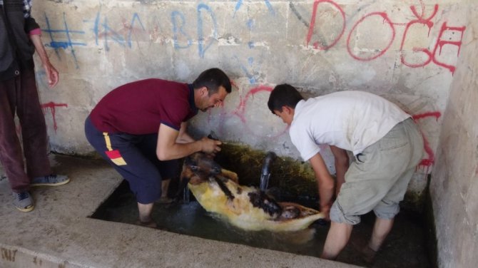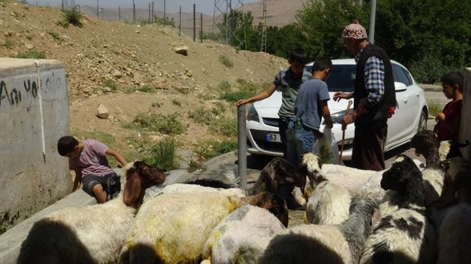 Gercüş’te sıcaktan bunalan hayvanlarını serinletiyorlar