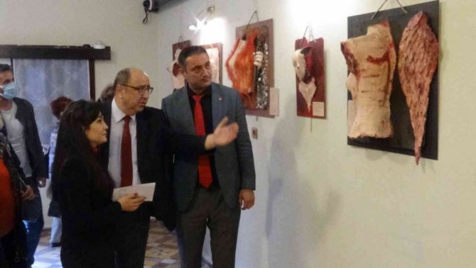 Sanatçı Gizem Yoğurtçu, "Göz Görmez Bilinç Görür" ismini verdiği sergide kadın ve çocuk şiddetini konu alarak atık malzemelerden eserler ortaya koydu. Pandemi sürecinde sergisini sanal ortamda açan Yoğurtçu, Edremit Belediyesi A. Sıdıka Erke Etnografya Müzesi fuayesinde sanat severler ile buluştu. Çalışma hakkında bilgi veren Gizem Yoğurtçu "Sergi bir geri dönüşüm sergisidir. Sizlerin ölmüş dediğiniz malzemeleri kullanıyorum. Yani çöp dediğiniz, atık dediğiniz malzemelerin hepsini harmanlayıp tekrar yeniden hayat verdiğimiz bir sergidir. Serginin teması kadın şiddetidir. Bunun yanı sıra çocuk şiddetini, öldürülen çocuklarımızı da konu alan bir sergidir. Hepsinin gerçek bir hayat hikayesi var. Onları sizinle paylaşmak istiyorum. Sizden ricam şudur. İçeri girdiğiniz zaman hepsine dokunmanızı istiyorum. Dokunmak serbesttir. Bunları ancak dokunarak hissedebilirsiniz" dedi.