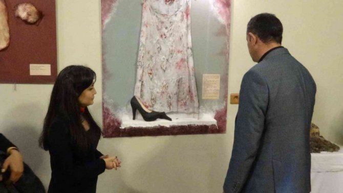 Balıkesir'in Edremit ilçesinde, sanatçı Gizem Yoğurtçu, geri dönüşüm malzemeleri ile yaptığı eserlerine yer verdiği sergide kadına uygulanan şiddeti anlatıyor.