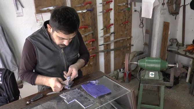 Denizli'de bıçak ustası, kot pantolonları geri dönüşüm olarak kullanıp bıçak sapı yapmaya başladı.