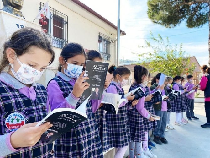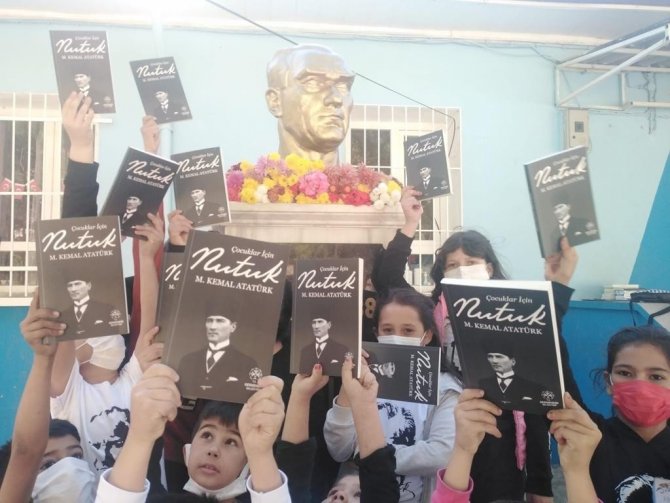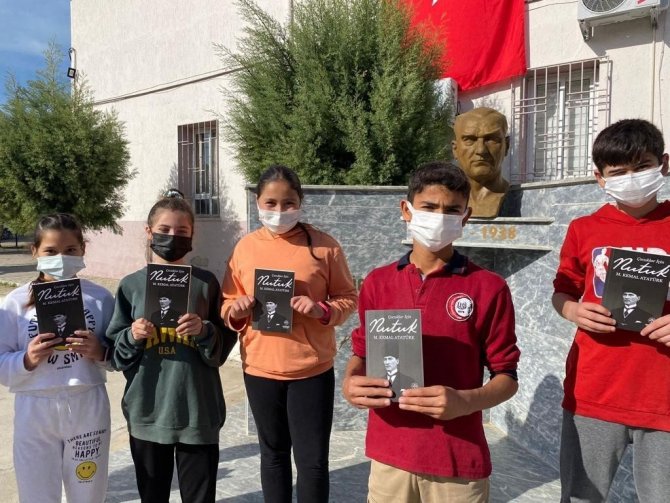 Gazi Mustafa Kemal Atatürk'ün "Nutuk" adlı eserinin çocuklar için hazırlanan versiyonu Germencik Belediye Başkanı Fuat Öndeş'in talimatıyla ilçe genelindeki tüm ilk ve ortaokul öğrencilerine dağıtıldı.