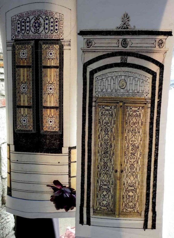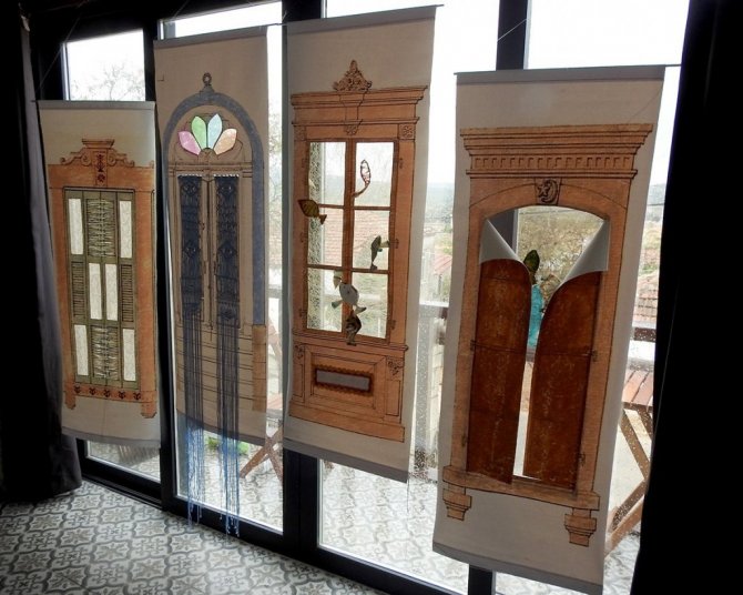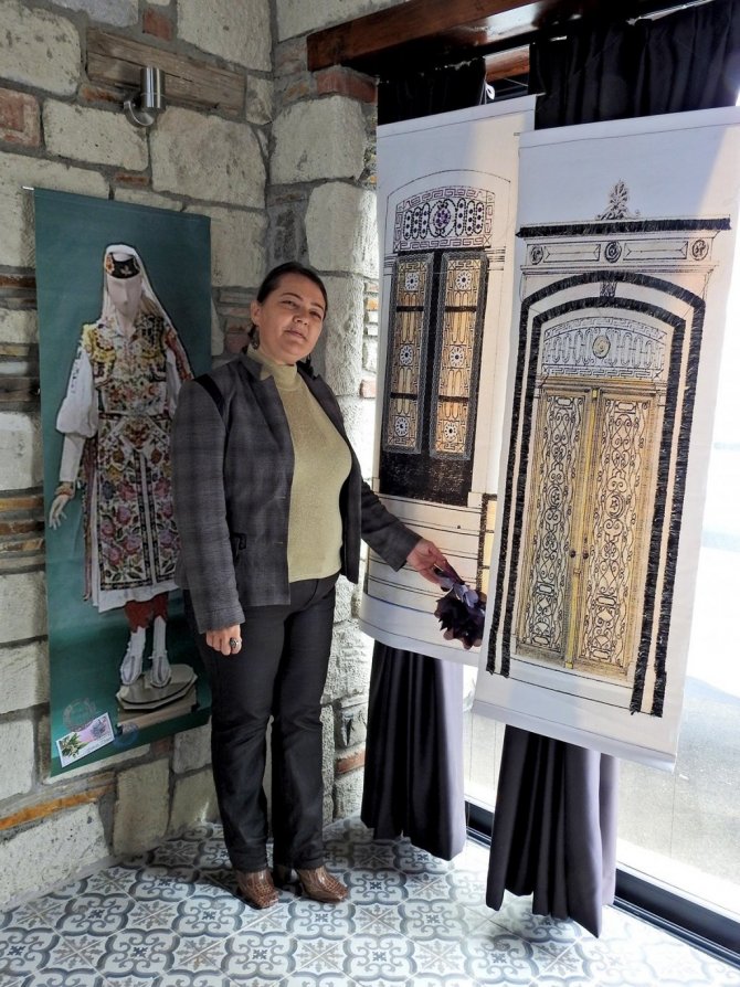 Sergide, geçmişten geleceğe bir gönderme yapmayı amaçladıklarını ifade eden Tümer, "Geçmişteki pencere ve kapı fonlarından yola çıkarak, geleceğe dair, geleneksel Türk el sanatlarında işlemeler, nakışlar, kalpli objelerle birleştirerek, geleceğe bir gönderme yapalım dedik. Gelecekte de el sanatlarının değerini, kapılar, pencerelerdeki işçilikle, sanatsal çalışmalarla anlatmaya çalıştık. Tekstil sanatıyla farklı yorumlamalar yaptık. Buna kolaj diyoruz. Farklı tekniklerle, farklı yüzey düzenlemeleri ile, geçmişin kapı ve pencerelerini, bugünkü güncel düzenleme tekniklerini, nakış tekniklerini, yok olmaya yüz tutan geleneksel Türk el sanatları ile betimleyerek, birleştirerek, yorumlayarak, geleceğe bir gönderme yapmaya çalıştık. Form olarak, biçim olarak, geçmişten esinlenip, yeni bina fonlarına etki olmasını bekliyoruz" diye vurguladı.