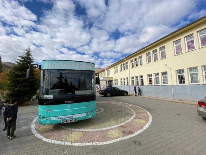 Kırşehir'de gezici kütüphane, öğrencilerle bir araya geldi.