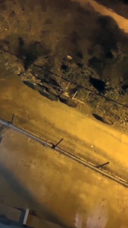 Giresun'da aç kalan domuz sürüsü yiyecek aramak için ilçe merkezine indi. Bir vatandaş ise evinin balkonundan cep telefonuyla o anları kaydetti.