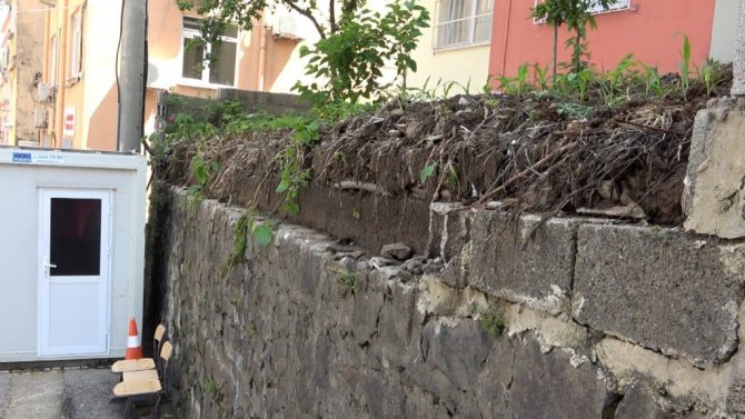 Giresun'da önceki gün yaşanan şiddetli yağış nedeniyle oluşan yağmur suları bahçe duvarının yıkılmasına sebep oldu.