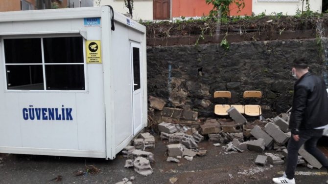 Giresun'da önceki gün etkili olan şiddetli sağanak yağış nedeniyle İl Sağlık Müdürlüğü'nün bahçesindeki duvar yağışın meydana getirdiği su birikintisi nedeniyle yıkıldı. Duvarın yanında bulunan bir araç duvar parçaları nedeniyle hasar gördü. Güvenlik kulübesindeki görevli ise kazadan şans eseri kurtulurken. o anlar güvenlik kameralarına yansıdı.