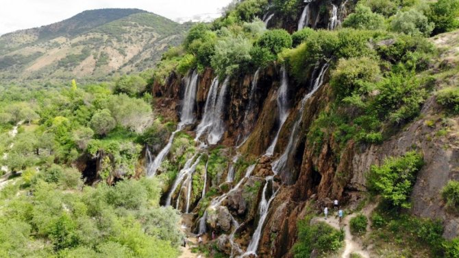 Dünyanın en görkemli şelalelerinden biri olan Erzincan'ın Çağlayan beldesindeki Girlevik Şelalesi, kentte termometrelerin 35 dereceyi gösterdiği bayram...