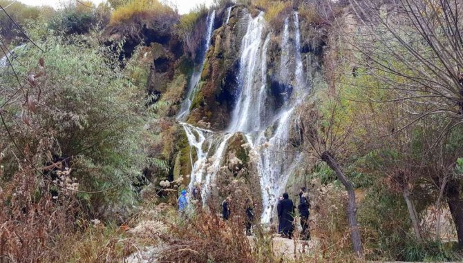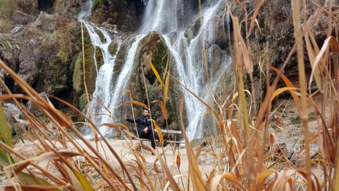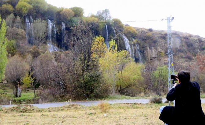 Yazın serin havası ve çevresindeki yemyeşil bitki örtüsüyle, kışın ise metrelerce yükseklikteki buz sarkıtlarıyla büyüleyen şelale, sonbahar mevsiminin son günlerinin yaşandığı şu sıralarda sararan yapraklarla misafirlerini ağırlıyor.