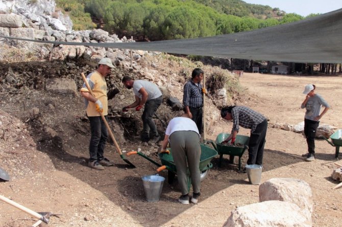 Milattan önce 4'üncü Yüzyıl'da inşa edilmiş olduğu düşünülen antik kentteki çalışmalarda kentin girişindeki duvar blokları ve o dönemde dükkan olarak kullanıldığı düşünülen bölümler yavaş yavaş ortaya çıkmaya başladı.