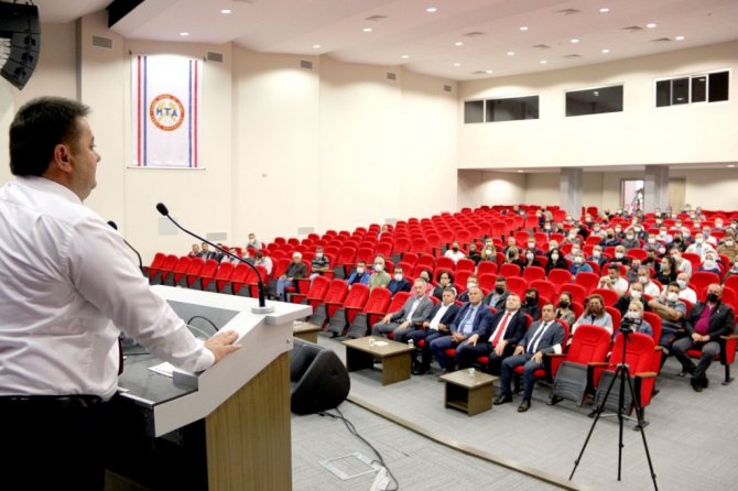 MTA Genel Müdürlüğü Sadrettin Alpan Toplantı Salonu'nda gerçekleştirilen bilgilendirme toplantısında GMİS MTA Şube Başkanı Tarkan Bor, MTA 19'uncu Dönem Toplu İş Sözleşmesi'nin 1 Eylül 2021 tarihinde imzalandığını belirterek şöyle konuştu; "Yoğun ve zorlu bir toplu iş sözleşmesi dönemi geçirdik. Süreci size aktardık ama bir de Genel Başkanımızın kendilerinden dinleyin istedik. Hem de kendilerine teşekkür edelim istedik.