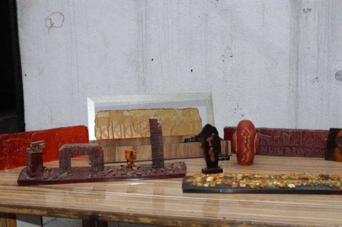 Şanlıurfa'da daha önce demir, taş, bakır ve tahtaya işlenen Göbeklitepe ve Balıklıgöl figürleri yaklaşık 4 yıldır damla kehribara işleniyor.