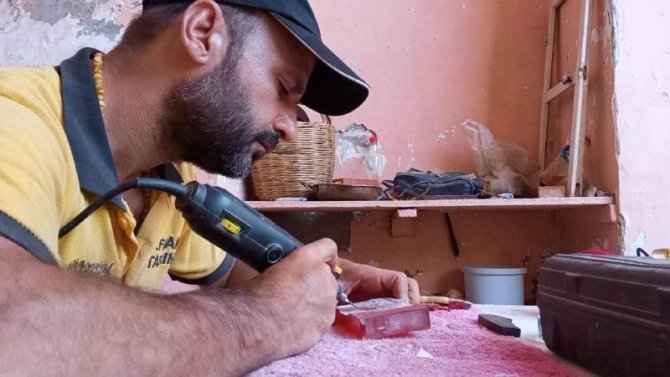 Şanlıurfa'da yaşayan Nihat Yıldırım isimli usta yaklaşık 30 yıldır taş işlemeciliği yapıyor. Hobi olarak başladığı taş işlemeciliği ile Şanlıurfa'yı dünyaya tanıtma hayalini gerçekleştirmek isteyen Yıldırım, damla kehribar taşlarının üzerine Balıklıgöl, Göbeklitepe ve Osmanlı İmparatorluğu'nun 34'üncü Padişahı Abdülhamid Han'ın figürlerini yapıyor.