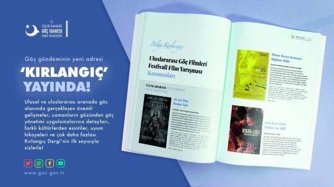 Kırlangıç Dergi’nin kapak konusu ise Cumhurbaşkanlığı himayelerinde İçişleri Bakanlığı Göç İdaresi Genel Müdürlüğü tarafından organize edilen bugüne kadar yapılmış en geniş kapsamlı ve katılımlı tematik film festivali Uluslararası Göç Filmleri Festivali gündemdeki en üst sırada yerini koruyor. Dünyayı saran ve derinden etkileyen pandemi nedeniyle çevrimiçi (online) ve canlı olarak gerçekleşen festivalin tüm detayları ve bu gibi kültürel aktivitelerin uyum sürecindeki kritik rolü de Kırlangıç Dergi’nin ilk sayısında okuyuculara sunuluyor.