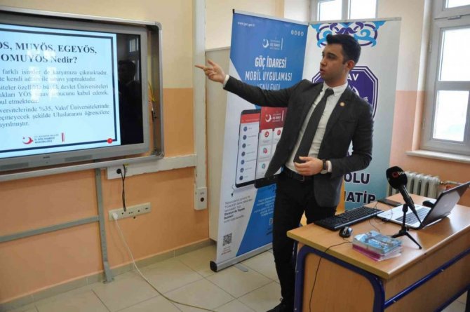 Göç Uzmanı Furkan Kılınç tarafından yapılan sunumda, yabancı uyruklu öğrencilerin yüksek okullara başvuruları, sınavları, tercihleri ve Türkiye'nin en iyi üniversiteleri hakkında bilgi paylaşımı yapıldı.