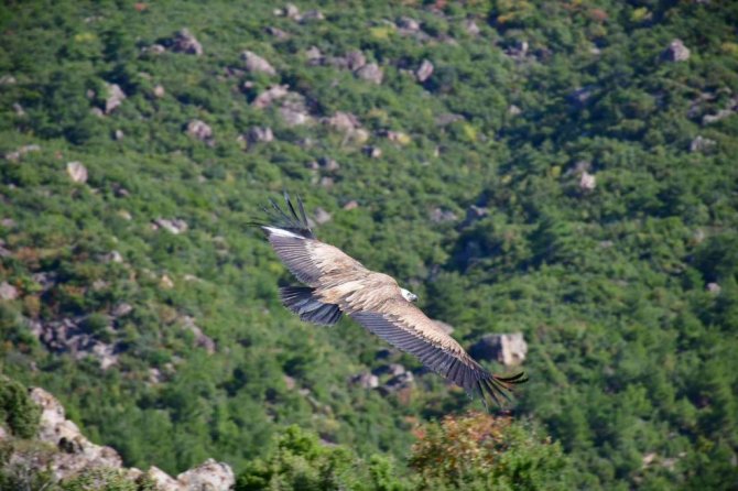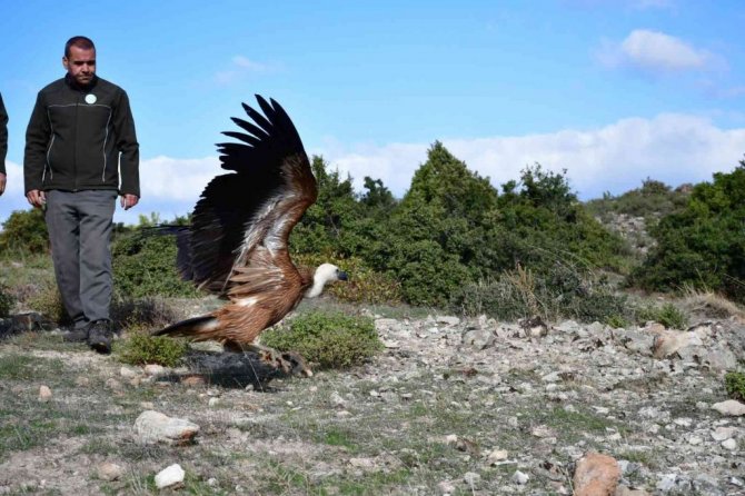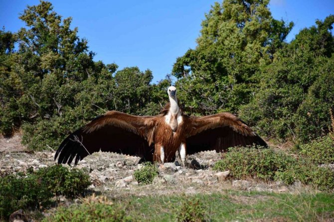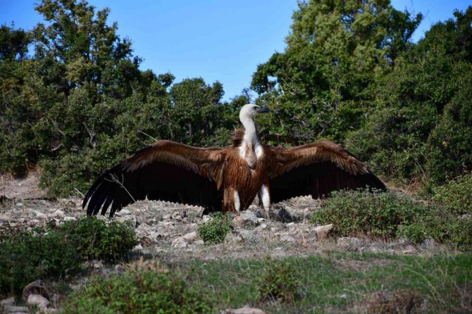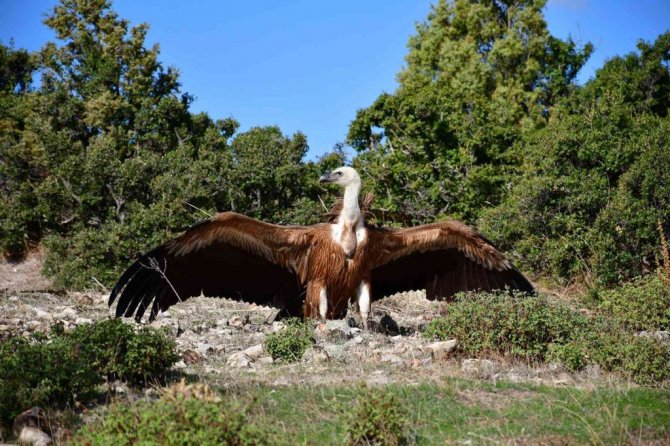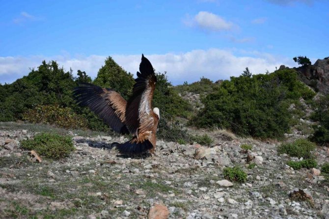 Çanakkale DKMP'de muayene edilen, iç ve dış parazitleri yapılan kızıl akbaba dün sabah saatlerinde Çanakkale merkeze bağlı Kayadere köyünde doğaya salındı.