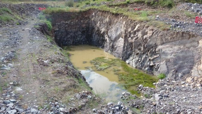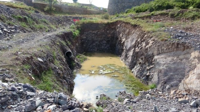Öte yandan arıtma tesisi yapma amacıyla kazılan ve çalışmaların yarıda bırakıldığı çukur ile kanalizasyon atıklarının aktığı dere drone ile havadan görüntülendi.