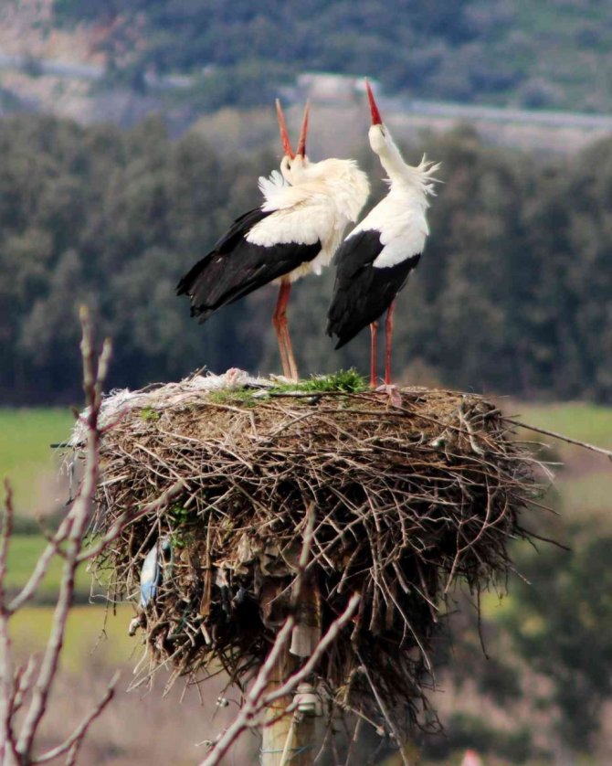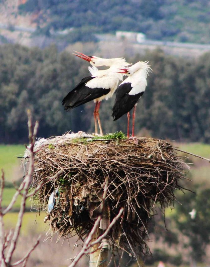 Yüzyıllardır Ula'nın Gökova Körfezi kenarındaki Akçapınar mahallesini mesken tutan leylekler Mart ayının ortalarında tüm yuvaları doldurdu.
