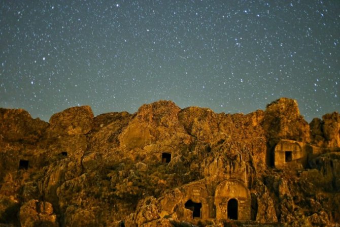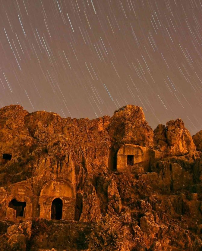 Kaya mezarları ve gökyüzündeki yıldızların oluşturduğu ışıltılı görüntülerin yılın farklı zamanlarında ortaya çıktığını söyleyen Özdoğan, "Fotoğraf çekmek için Kahramanmaraş'ın farklı bölgelerine gidiyoruz. Amacımız kentimizin tanıtımını yapmak. Yıldızların ışıltısını çekmek için bazen bir yıl bazen yıllarca beklersiniz ve bölgeyi fotoğraflarsınız. Burada yıldızlarla beraber kaya mezarlarını da fotoğrafladım" dedi.