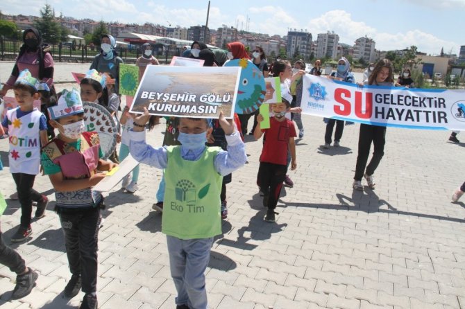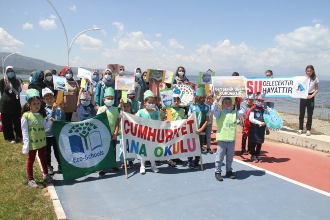 Bu yıl yaşanan kuraklık ve artan tarımsal sulama sebebiyle su seviyesi gözle görülür şekilde düşen ve kıyılarında metrelerce çekilme yaşanan Beyşehir Gölü'ne dikkat çekmek ve farkındalık oluşturmak isteyen Cumhuriyet Anaokulu öğrencileri, velileri ve öğretmenlerinin de eşlik ettiği etkinlikte göl kıyısındaki parkta bir araya geldi. Minik öğrenciler, ellerinde taşıdıkları "Beyşehir Gölü kurumasın, hayat durmasın", "Su gelecektir, hayattır", "Suyu boşa akıtma, geleceğini koru", "Yaşamlar farklı olsa da ihtiyaç aynı", "Su gelecektir, akıp giden geleceğimizin elinden tutun" yazılı döviz ve pankartlarla suların çekildiği göl kıyısında "Beyşehir Gölü'ne sahip çık" sloganları ile yürüyüş yaparak dikkatleri tatlı sularda yaşanan manzaraya çekmeye çalıştı.