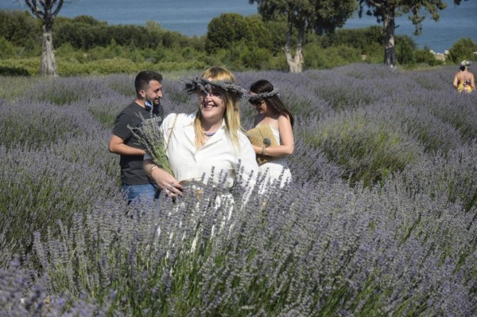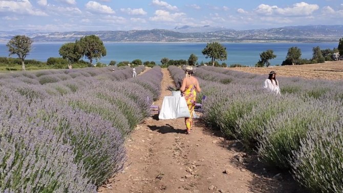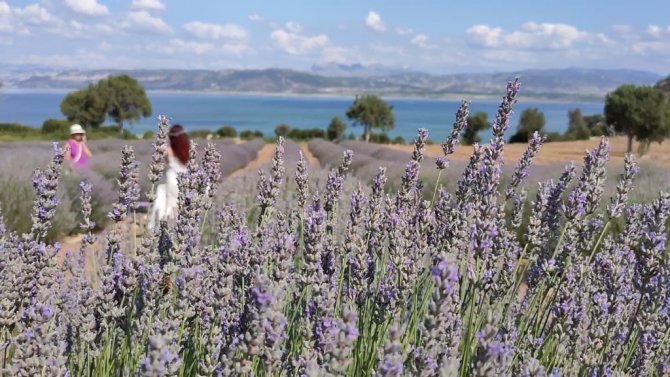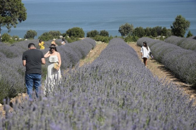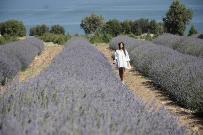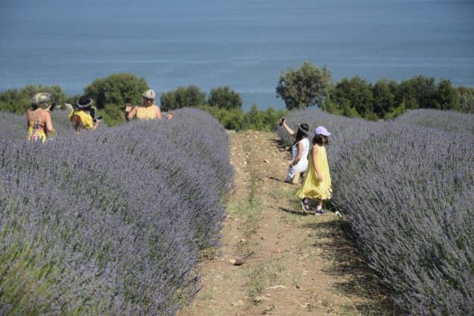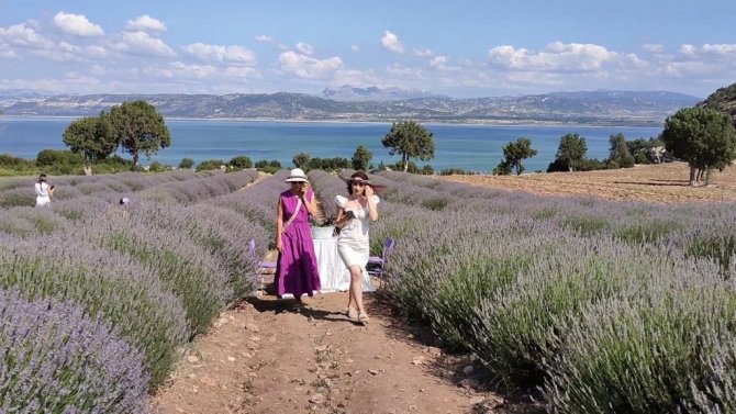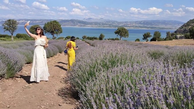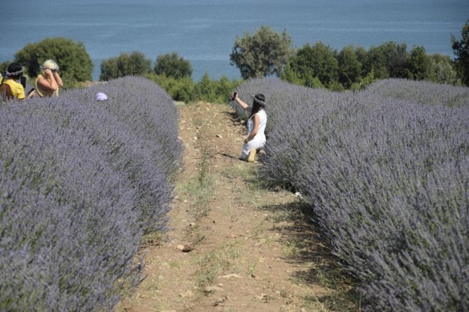 Göl manzaralı lavanta bahçeleri ziyaretçi akınına uğruyor